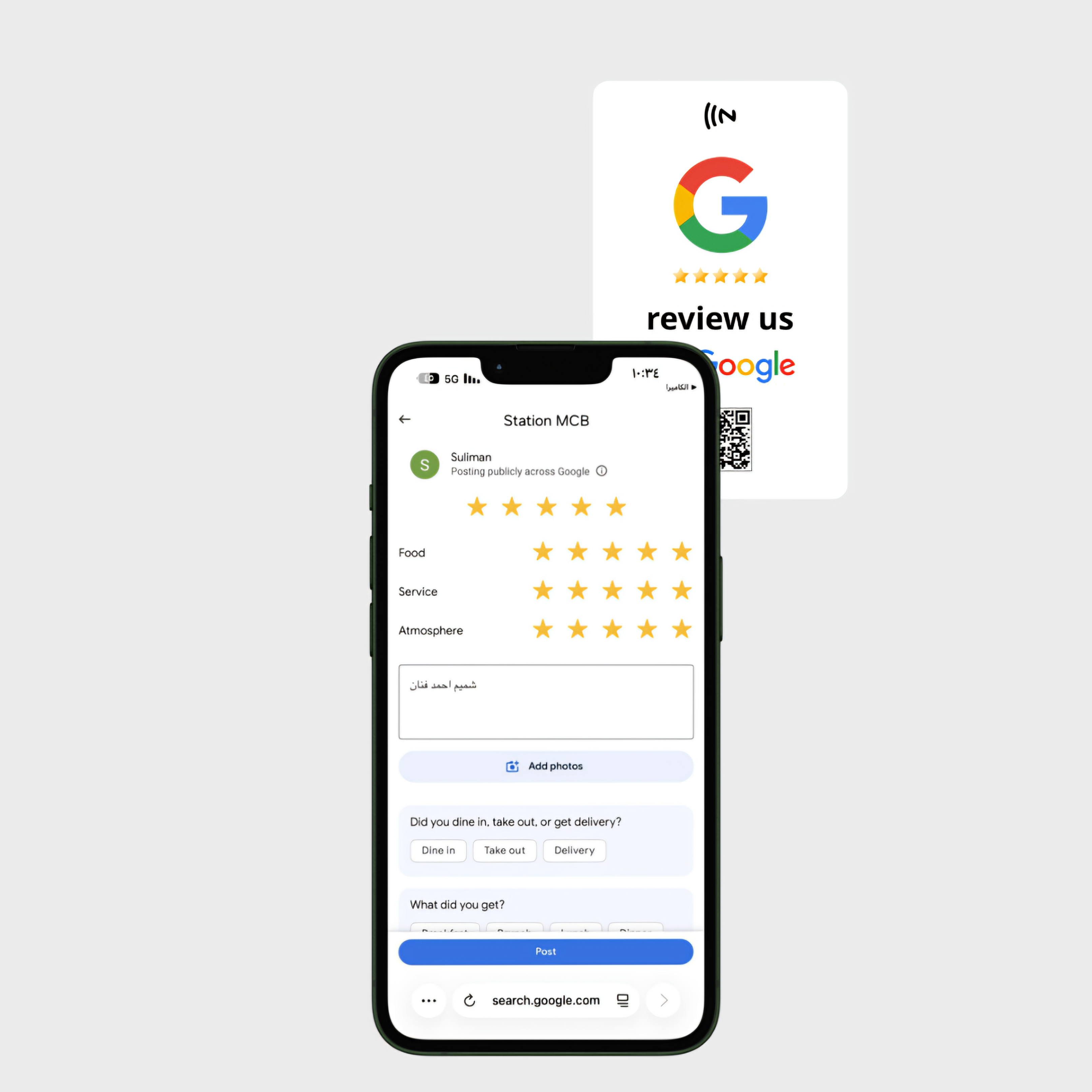 ج.متُعد بطاقة Quickly NFC Google Reviews الأداة الأسرع والأذكى لتعزيز سمعة مشروعك التجاري وتجميع تقييمات العملاء في ثوانٍ معدودة. بدلاً من البحث الطويل في خرائط جوجل، يكفي أن يقوم العميل بتقريب هاتفه من البطاقة ليجد نفسه مباشرة في صفحة وضع التقييم الخاصة بك.